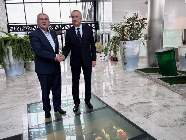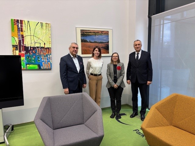 Podczas spotkania zaprezentowaliśmy potencjał Parku Naukowo-Technologicznego Euro-Centrum oraz innowacyjne rozwiązania rozwijane przez firmy działające na jego terenie. Rozmowy, którym ze strony Parku przewodniczył prezes Roman Trzaskalik, koncentrowały się wokół kluczowych tematów: rozwoju przedsiębiorczości, transformacji regionalnej oraz możliwości współpracy między polskimi a słoweńskimi podmiotami gospodarczymi.